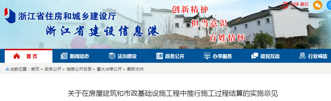 浙江省2020年5月20日,浙江省住建廳發(fā)布《關(guān)于在房屋建筑和市政基礎(chǔ)設(shè)施工程中推行施工過程結(jié)算的實(shí)施意見》:自6月20日起,在全省房建和市政項(xiàng)目中全面推行施工過程結(jié)算。