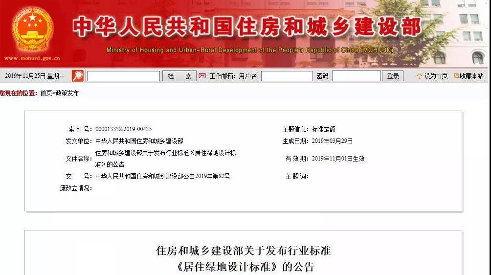 《居住綠地設(shè)計(jì)標(biāo)準(zhǔn)》為行業(yè)標(biāo)準(zhǔn),編號為CJJ/T294-2019,自2019年11月1日起實(shí)施。