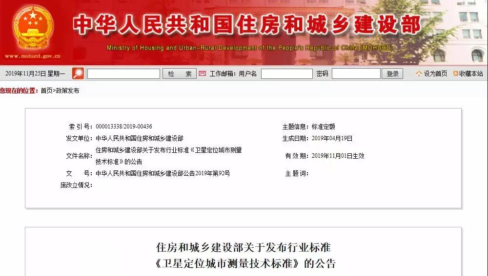 《衛(wèi)星定位城市測量技術(shù)標(biāo)準(zhǔn)》為行業(yè)標(biāo)準(zhǔn),編號為 CJJ/T73-2019,自2019年11月1日起實(shí)施。