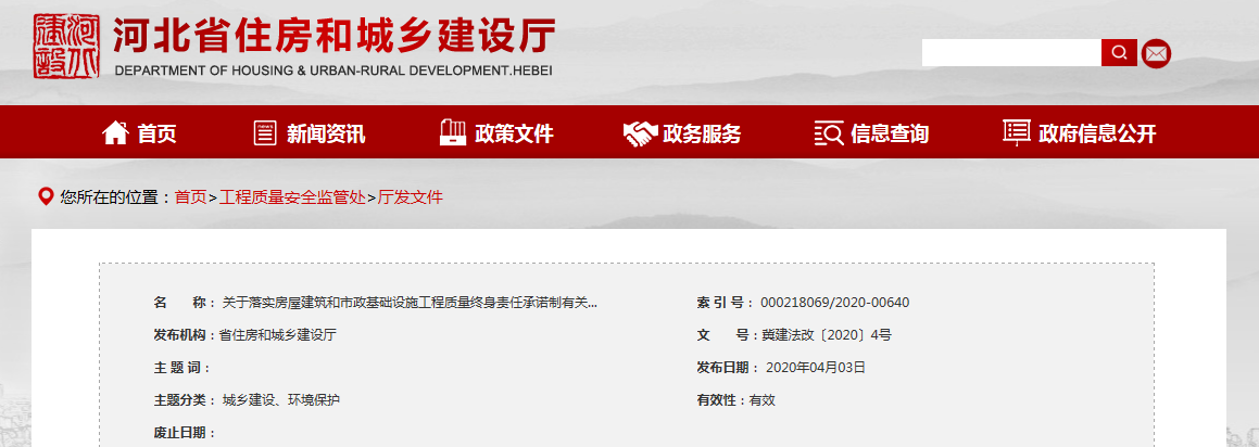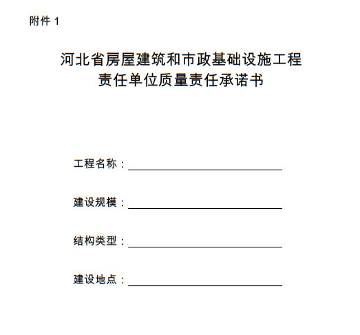 為強(qiáng)化我省房屋建筑和市政基礎(chǔ)設(shè)施工程建設(shè)質(zhì)量管理,提高各方責(zé)任主體質(zhì)量意識(shí),根據(jù)《河北省加強(qiáng)建筑工程質(zhì)量管理工作意見》(辦字 〔2013〕130 號(hào))、《住房城鄉(xiāng)建設(shè)部辦公廳關(guān)于嚴(yán)格落實(shí)建筑工程質(zhì)量終身責(zé)任承諾制的通知》(建質(zhì)〔2014〕44號(hào))等文件要求,現(xiàn)就落實(shí)房屋建筑和市政基礎(chǔ)設(shè)施工程質(zhì)量終身責(zé)任承諾制(以下簡稱“承諾制”)有關(guān)事項(xiàng)通知如下: