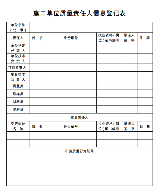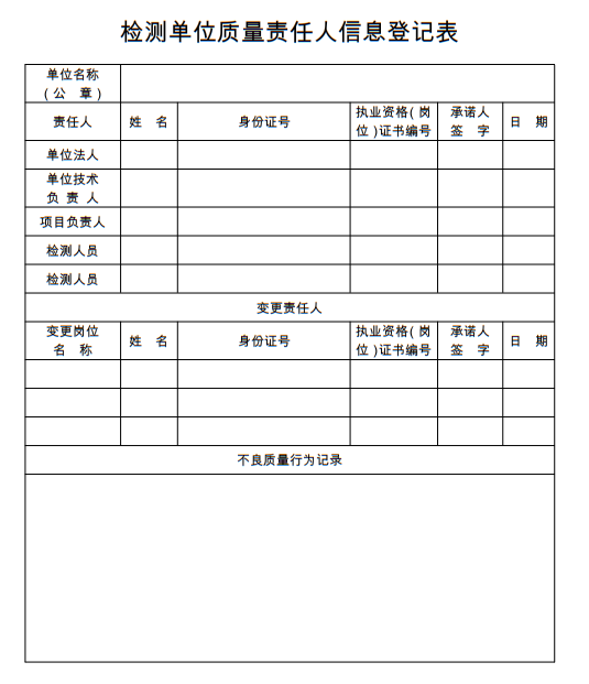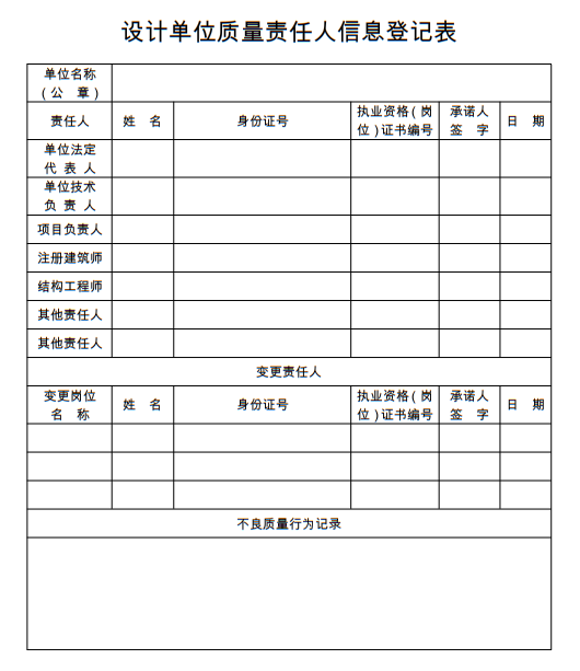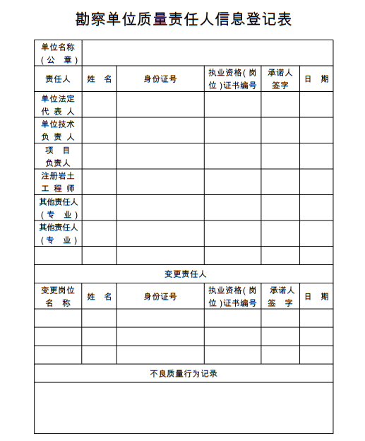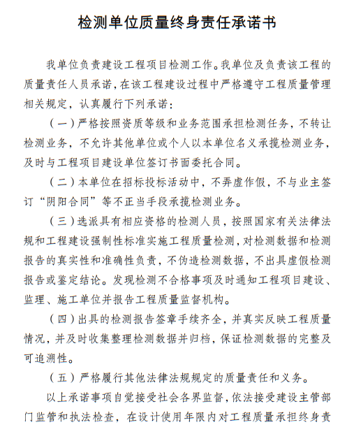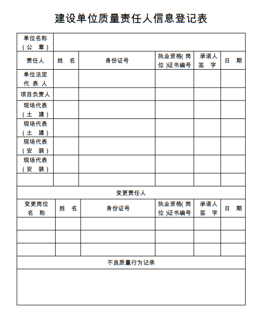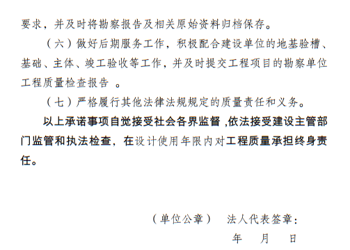 (三)責(zé)任單位或質(zhì)量責(zé)任人員如發(fā)生變更,新更換的單位或人員須按上述要求履行質(zhì)量承諾手續(xù),并及時(shí)在《承諾書》中補(bǔ)充更新相關(guān)信息。