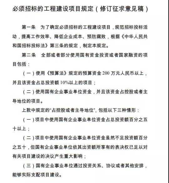剛剛,國家發(fā)改委發(fā)布《必須招標(biāo)的工程建設(shè)項(xiàng)目規(guī)定》(修訂征求意見稿),對(duì)2018版規(guī)定進(jìn)行補(bǔ)充修改。