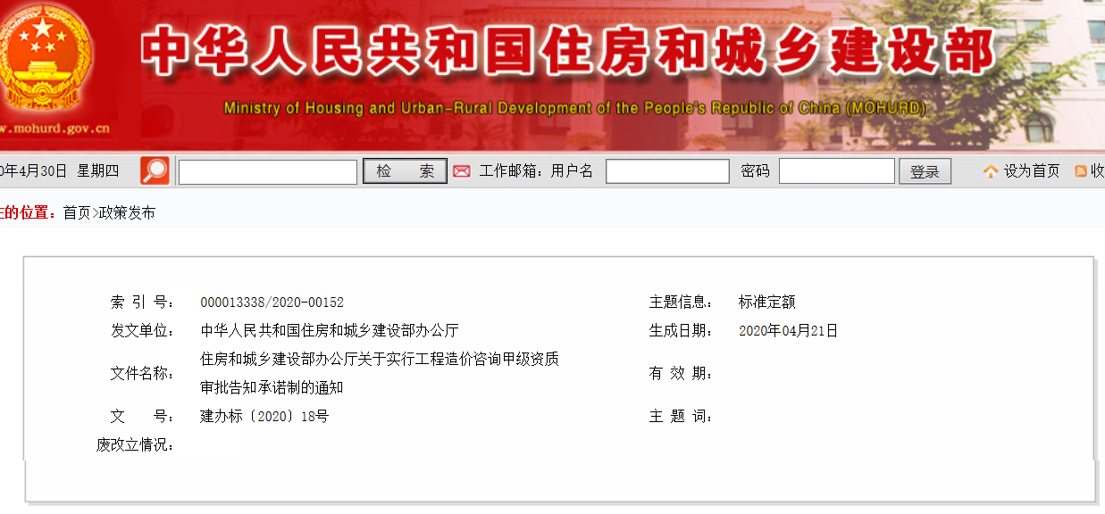 (四)公示。我部通過門戶網(wǎng)站(www.mohurd.gov.cn)辦事大廳專欄公示工程造價(jià)咨詢乙級(jí)資質(zhì)晉升甲級(jí)資質(zhì)的審批意見,接受社會(huì)監(jiān)督。公示期為10日。