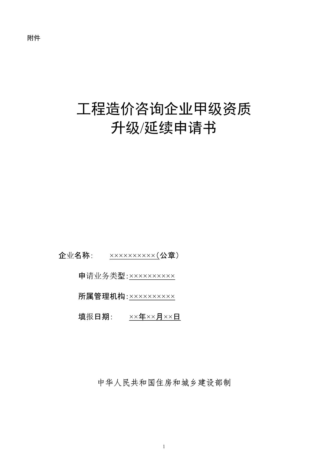 附件:工程造價(jià)咨詢企業(yè)甲級(jí)資質(zhì)升級(jí)/延續(xù)申請(qǐng)書