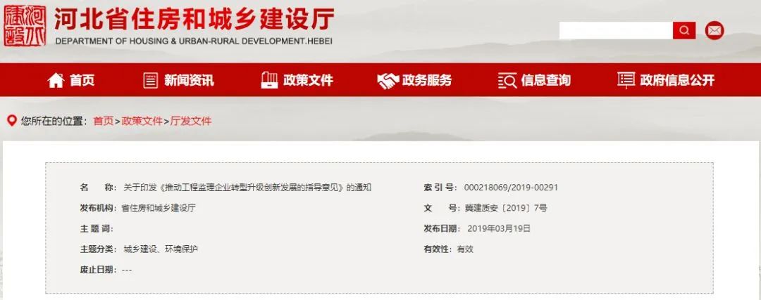 2019年河北省住建廳發(fā)布關(guān)于印發(fā)《推動工程監(jiān)理企業(yè)轉(zhuǎn)型升級創(chuàng)新發(fā)展的指導(dǎo)意見》的通知。明確: