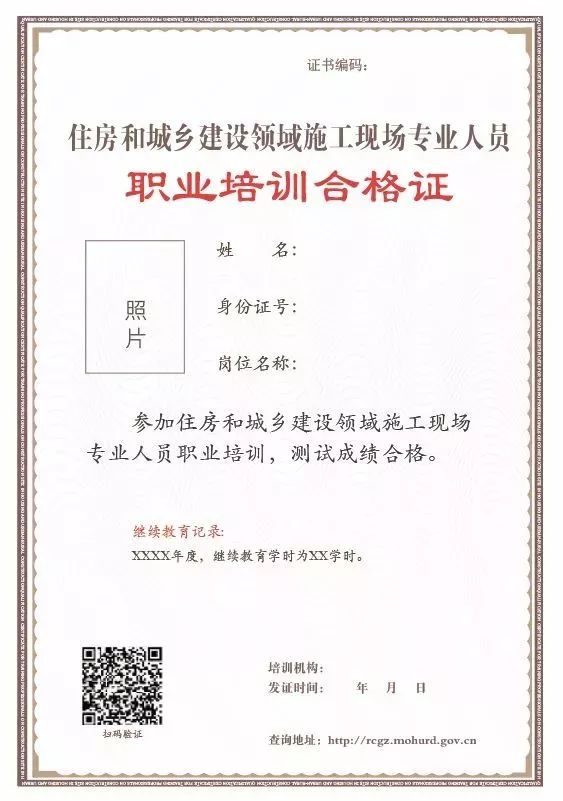 住房和城鄉(xiāng)建設(shè)領(lǐng)域施工現(xiàn)場專業(yè)人員職業(yè)培訓(xùn)合格證樣式