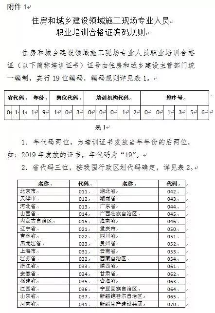 1.住房和城鄉(xiāng)建設(shè)領(lǐng)域施工現(xiàn)場專業(yè)人員職業(yè)培訓(xùn)合格證編碼規(guī)則