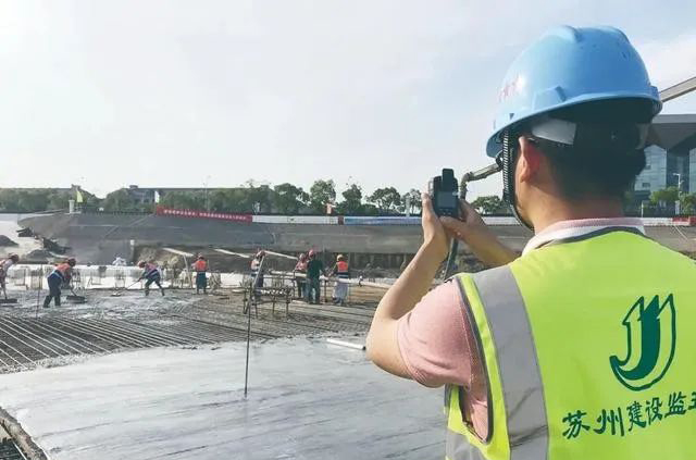5月末的一天,一大早,在蘇州科技館、工業(yè)展覽館項目部,總監(jiān)理工程師陳明國胸前佩戴著監(jiān)理記錄儀,通過管理人員實名制通道,進入施工現場,開始進行專項巡查。接近下班時,陳明國從實名制通道出口出來,走到監(jiān)理辦公室,打開電腦,登錄“現場質量安全監(jiān)理監(jiān)管系統(tǒng)”,將巡查期間拍攝的關鍵工序施工照片和一段約3分鐘的視頻上傳至系統(tǒng),并寫下現場描述。