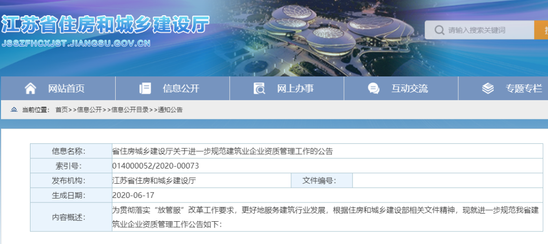 江蘇省住建廳發(fā)布《關(guān)于進(jìn)一步規(guī)范建筑業(yè)企業(yè)資質(zhì)管理工作的公告》,明確了多個(gè)重要事項(xiàng):