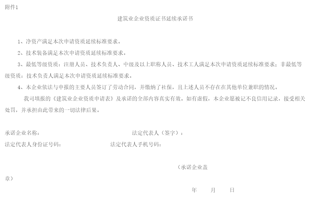 附件:1.建筑業(yè)企業(yè)資質(zhì)證書延續(xù)承諾書