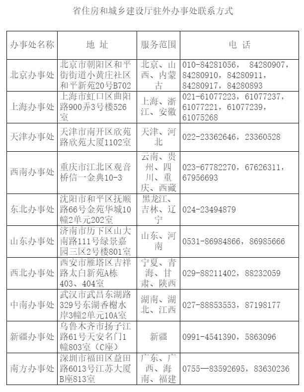 3.省住房和城鄉(xiāng)建設(shè)廳駐外辦事處聯(lián)系方式