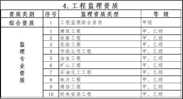 保留綜合資質(zhì)。取消水利水電工程、公路工程、港口與航道工程等專業(yè)資質(zhì),其資質(zhì)要求執(zhí)行有關(guān)行業(yè)主管部門規(guī)定。取消農(nóng)林工程監(jiān)理資質(zhì),建設(shè)單位委托農(nóng)林工程監(jiān)理業(yè)務(wù)時,不再作資質(zhì)要求。上述4個監(jiān)理專業(yè)資質(zhì)取消后,相關(guān)企業(yè)可以換發(fā)相近專業(yè)同等級監(jiān)理專業(yè)資質(zhì)。監(jiān)理專業(yè)資質(zhì)等級壓減為甲、乙兩級,原丙級資質(zhì)并入相應(yīng)專業(yè)的乙級資質(zhì)。取消事務(wù)所資質(zhì)。