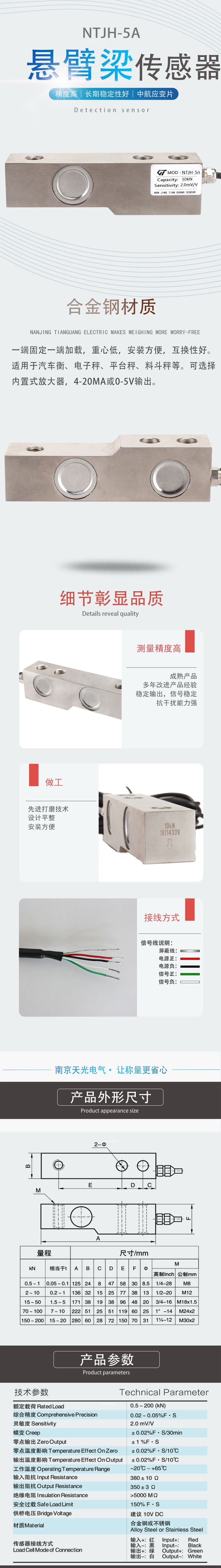 NTJH-5A懸臂梁稱重傳感器