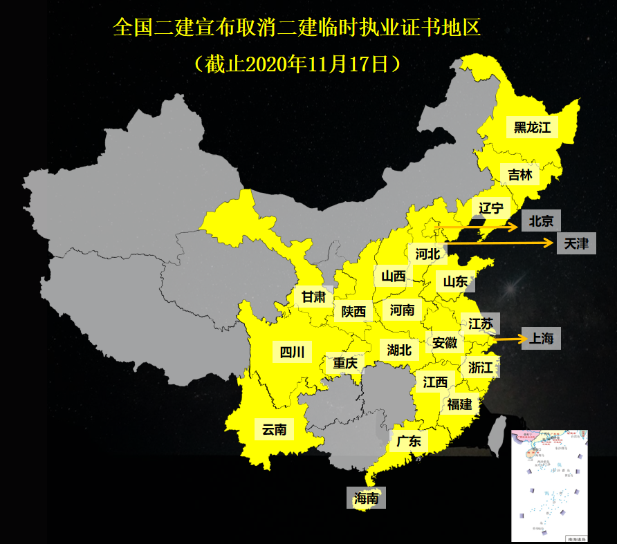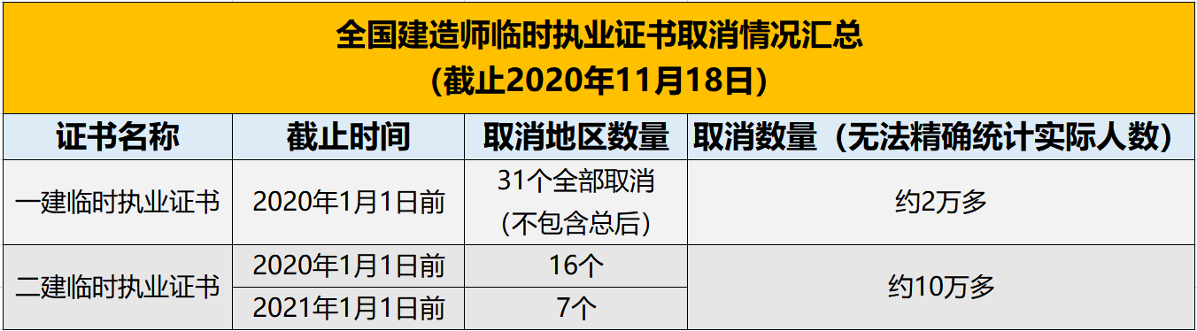 自此,從去年7月住建部宣布取消一建臨時(shí)執(zhí)業(yè)證書,同時(shí)要求各地區(qū)做好取消二建臨時(shí)執(zhí)業(yè)證書的工作以來(以下簡稱“通知”),全國已有23個(gè)地區(qū)陸續(xù)取消二建臨時(shí)執(zhí)業(yè)證書。