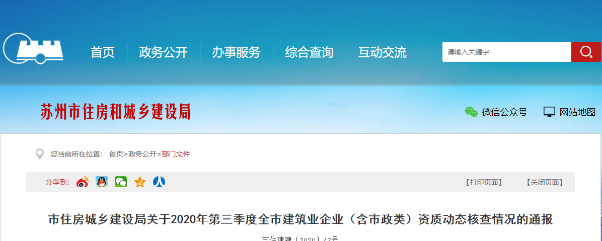 一、蘇州:139家建筑企業(yè)被點(diǎn)名10月30日,蘇州住建局下發(fā)《市住房城鄉(xiāng)建設(shè)局關(guān)于2020年第三季度全市建筑業(yè)企業(yè)(含市政類)資質(zhì)動(dòng)態(tài)核查情況的通報(bào)》蘇住建建〔2020〕43號(hào),提到: