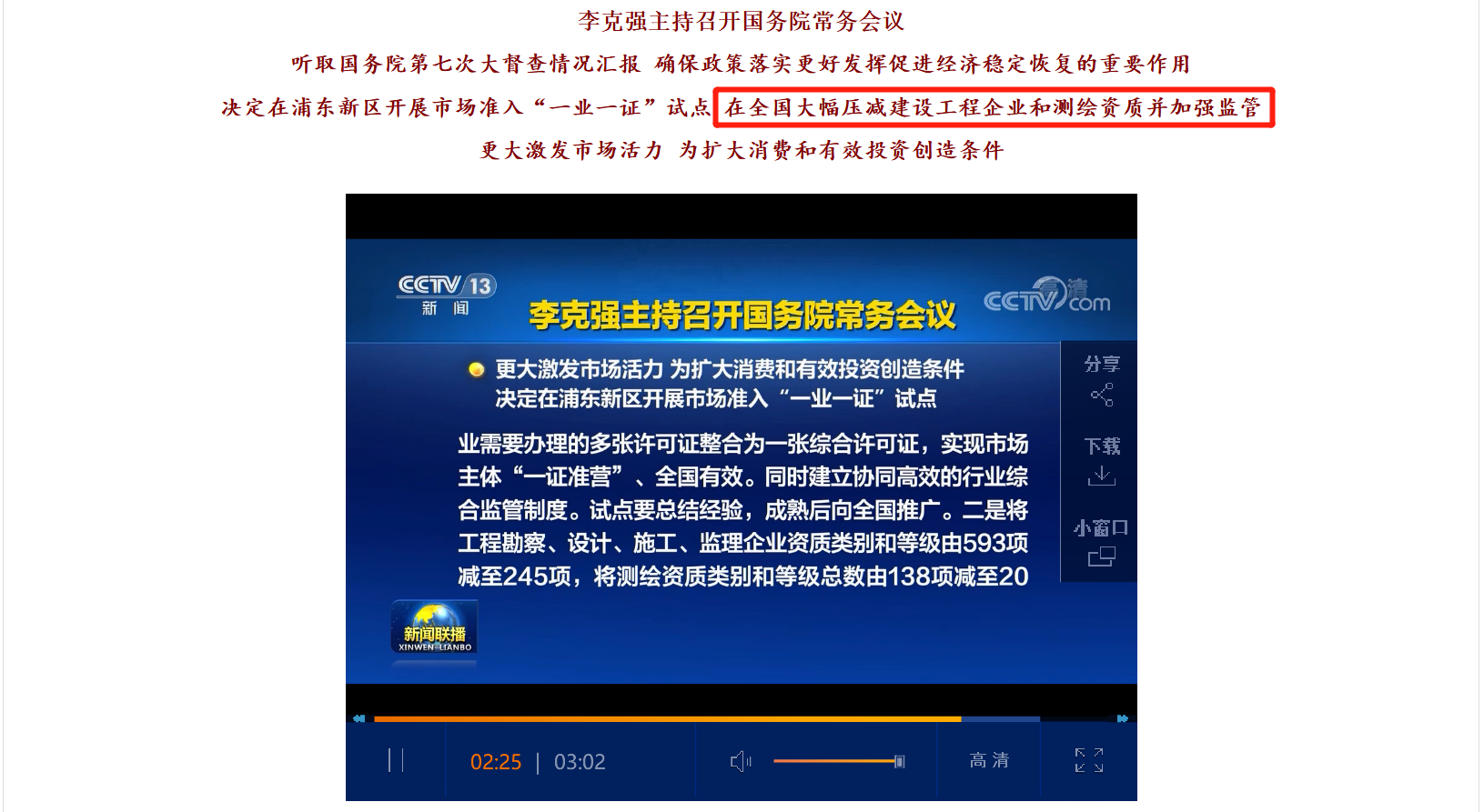 會議提出:將工程勘察、設計、施工、監(jiān)理企業(yè)資質(zhì)類別和等級由593項減少至245項目。