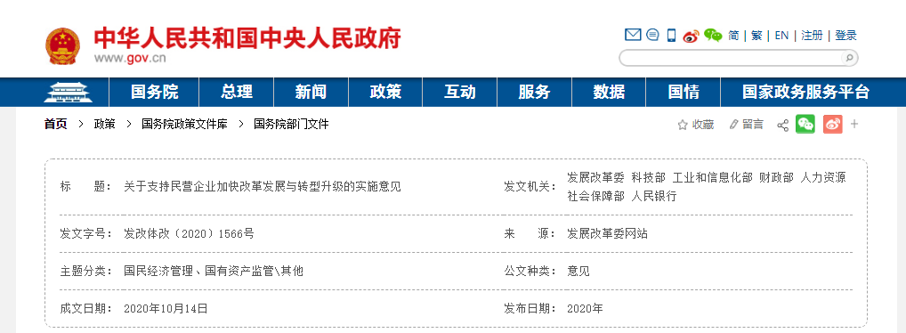 前段時間,國家發(fā)展改革委、科技部、工業(yè)和信息化部、財政部、人力資源社會保障部、人民銀行等六部門發(fā)布《關于支持民營企業(yè)加快改革發(fā)展與轉(zhuǎn)型升級的實施意見》。