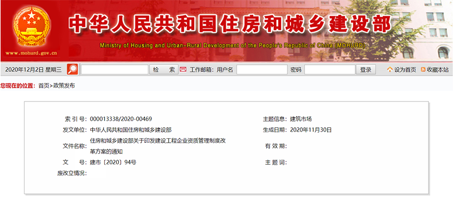 各省、自治區(qū)住房和城鄉(xiāng)建設廳建筑資質(zhì),建筑資質(zhì)代辦,直轄市住房和城鄉(xiāng)建設(管)委,北京市規(guī)劃和自然資源委,新疆生產(chǎn)建設兵團住房和城鄉(xiāng)建設局,國務院有關(guān)部門:《建設工程企業(yè)資質(zhì)管理制度改革方案》已經(jīng)2020年11月11日國務院常務會議審議通過,現(xiàn)印發(fā)給你們,請認真貫徹落實,進一步放寬建筑市場準入限制,優(yōu)化審批服務,激發(fā)市場主體活力。同時,堅持放管結(jié)合,加大事中事后監(jiān)管力度,切實保障建設工程質(zhì)量安全。中華人民共和國住房和城鄉(xiāng)建設部