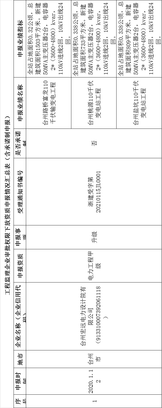 現(xiàn)將近期建設工程企業(yè)資質(建設部審批權限下放試點資質)申報情況在浙江省住房和城鄉(xiāng)建設部門戶網(wǎng)站(http://jst.zj.gov.cn/)予以公示,以廣泛接受社會監(jiān)督。公示內容詳見附表。任何有關單位及個人,如對企業(yè)申報資質情況有異議的,均可向我廳政務服務中心反映情況,單位反映情況需加蓋公章,個人反映情況需簽署真實姓名并留下聯(lián)系電話、地址和郵政編碼。聯(lián)系電話:0571-85216767通訊地址:杭州市西湖區(qū)紫荊花路48號南都研發(fā)大樓B座一樓郵政編碼:310000附件:工程監(jiān)理企業(yè)審批權限下放資質申報情況匯總表.xlsx浙江省住房和城鄉(xiāng)建設廳政務服務中心2021年1月15日工程監(jiān)理企業(yè)審批權限下放資質申報情況匯總表(含承諾制申報)