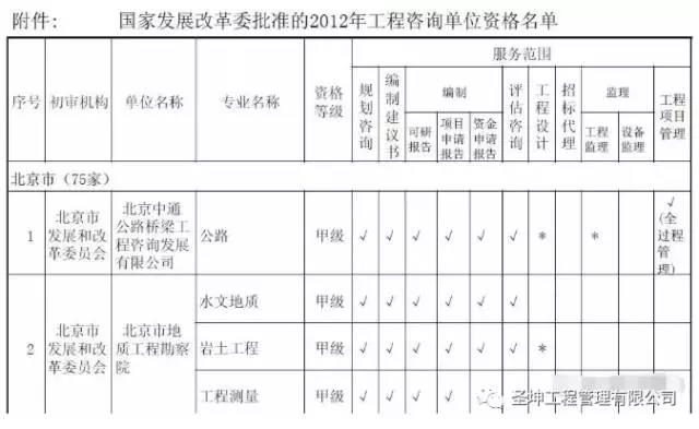 國(guó)家發(fā)展改革委2012年8月15日詳細(xì)名單略。共519頁(yè),351家咨詢單位,資格等級(jí)分:甲級(jí)、乙級(jí)、丙級(jí)。