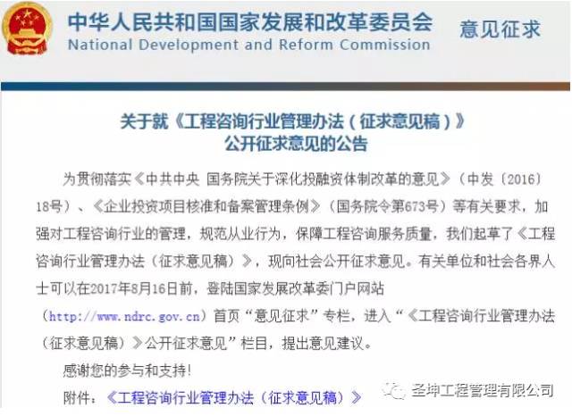 發(fā)改委網(wǎng)站17日消息,發(fā)改委就工程咨詢行業(yè)管理辦法征求意見(jiàn)。特別提醒關(guān)注以下幾點(diǎn):