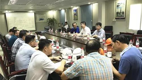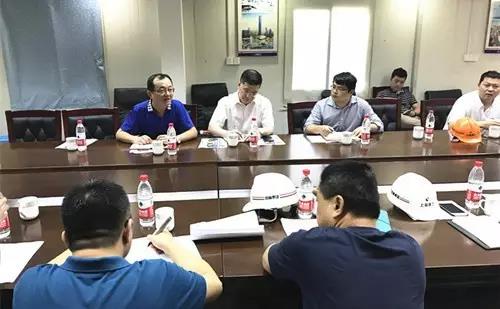 在視察工地之后,在東航基地(北區(qū))項(xiàng)目部會(huì)議室聽取了南北區(qū)總承包以及其他參建子集團(tuán)的工作匯報(bào)。