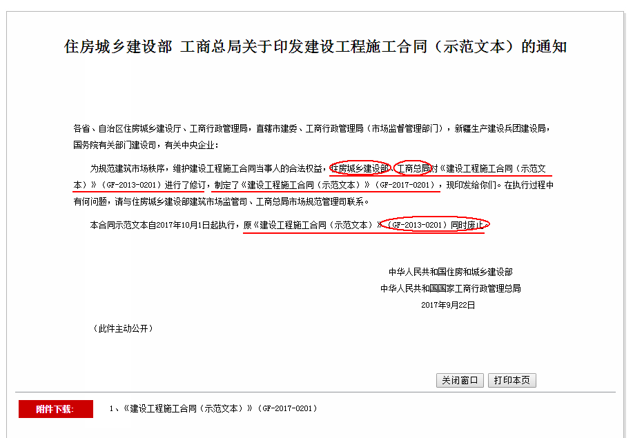 近日,住建部、工商總局對2013版《建設(shè)工程施工合同(示范文本)》進行了修訂,制定了《建設(shè)工程施工合同(示范文本)》(GF-2017-0201)。2017版《示范文本》,自2017年10月1日起執(zhí)行。原《建設(shè)工程施工合同(示范文本)》(GF-2013-0201)同時廢止。