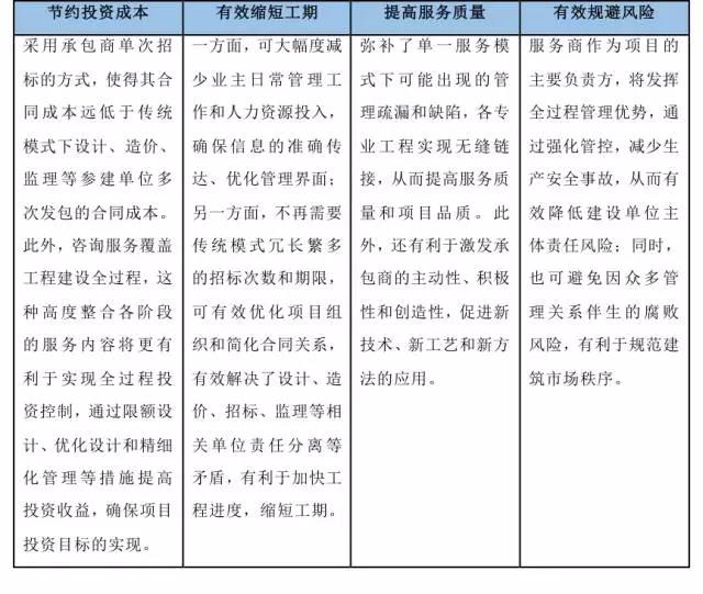 以前我國(guó)傳統(tǒng)的建設(shè)模式是將建筑項(xiàng)目中的設(shè)計(jì)、施工、監(jiān)理等階段分隔開(kāi)來(lái),各單位分別負(fù)責(zé)不同環(huán)節(jié)和不同專業(yè)的工作,這不僅增加了成本,也分割了建設(shè)工程的內(nèi)在聯(lián)系,在這個(gè)過(guò)程中由于缺少全產(chǎn)業(yè)鏈的整體把控,信息流被切斷,很容易導(dǎo)致建筑項(xiàng)目管理過(guò)程中各種問(wèn)題的出現(xiàn)以及帶來(lái)安全和質(zhì)量的隱患,使得業(yè)主難以得到完整的建筑產(chǎn)品和服務(wù)。而實(shí)行全過(guò)程工程咨詢,其高度整合的服務(wù)內(nèi)容在節(jié)約投資成本的同時(shí)也有助于縮短項(xiàng)目工期,提高服務(wù)質(zhì)量和項(xiàng)目品質(zhì),有效地規(guī)避了風(fēng)險(xiǎn),這是政策導(dǎo)向也是行業(yè)進(jìn)步的體現(xiàn)。