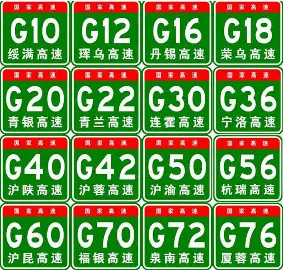 國家高速在標(biāo)牌上都以綠底白字顯示,G后面的數(shù)字有1位、2位或者4位,數(shù)字不同也代表不同的含義。