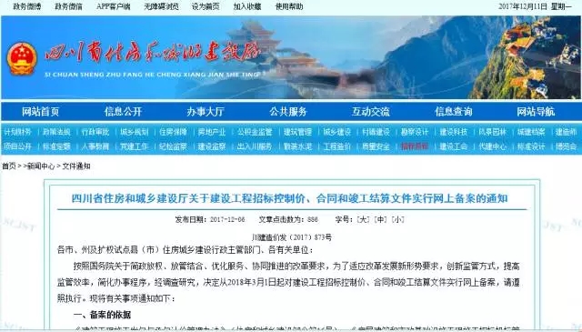 近日,四川省住建廳發(fā)文,要求自2018年3月1日起,對(duì)省內(nèi)新建、擴(kuò)建和改建的房屋建筑和市政基礎(chǔ)設(shè)施工程項(xiàng)目,建設(shè)工程招標(biāo)控制價(jià)、合同和竣工結(jié)算文件實(shí)行網(wǎng)上備案。