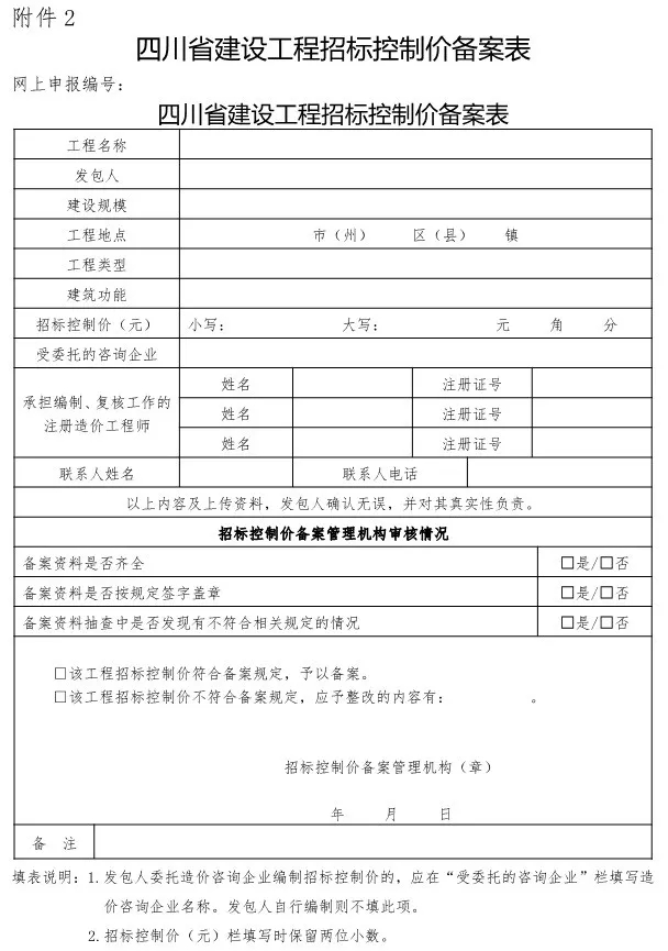 2.四川省建設(shè)工程招標(biāo)控制價(jià)備案表