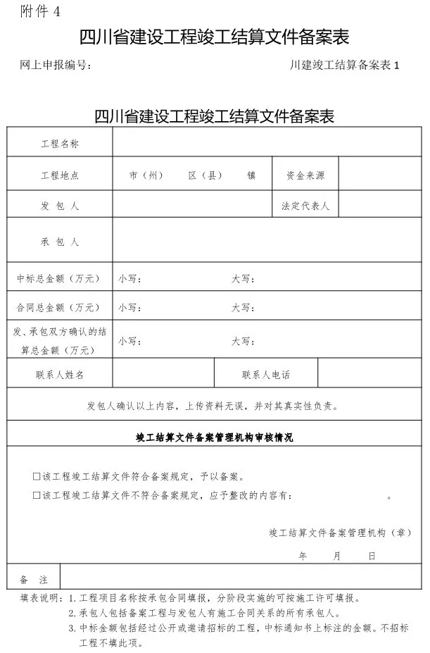 4.四川省建設(shè)工程竣工結(jié)算文件備案表