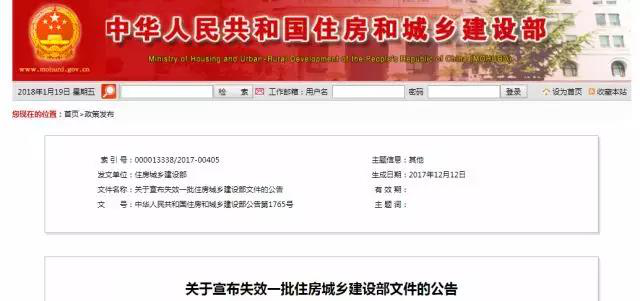 今日,住建部官網(wǎng)發(fā)布《關(guān)于宣布失效一批住房城鄉(xiāng)建設(shè)部文件的公告》。
