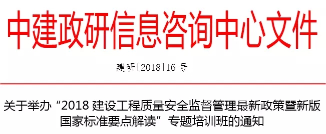 當(dāng)前建設(shè)行業(yè)改革發(fā)展新趨勢下的工程建設(shè)安全工作如何推進(jìn),已經(jīng)成為廣大施工企業(yè)、設(shè)計、監(jiān)理、建設(shè)企業(yè)的關(guān)注重點。為規(guī)范工程參建各方主體的質(zhì)量安全行為,促進(jìn)工程建設(shè)各方主體嚴(yán)格落實質(zhì)量安全主體責(zé)任,加強(qiáng)質(zhì)量安全風(fēng)險管控,提高工程項目質(zhì)量安全的可靠性。中建政研信息咨詢中心特舉辦“2018建設(shè)工程質(zhì)量安全監(jiān)督管理最新政策暨新版國家標(biāo)準(zhǔn)要點解讀”專題培訓(xùn)班,現(xiàn)將有關(guān)事項函告如下: