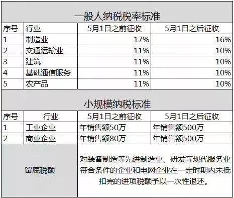 從2018年5月1日起,實(shí)施以下深化增值稅改革征收標(biāo)準(zhǔn)整理如下: