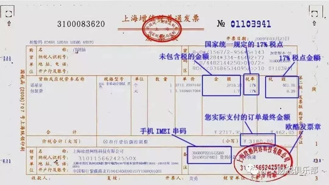 對于稅率的調(diào)整,可能會給企業(yè)履行合同帶來潛在的法律風(fēng)險。這是基于增值稅固有的特性,即增值稅系價外稅,以下圖某企業(yè)17%的增值稅稅率為例,我們通??吹皆鲋刀惏l(fā)票中有商品的單價、數(shù)量、金額以及稅率、稅款,價稅合計即為我們出售給買方的最終的價格。