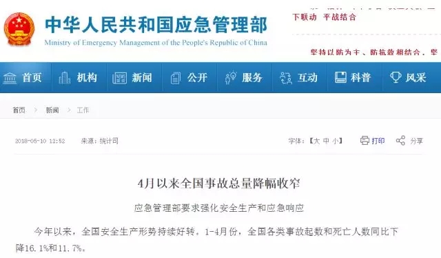 據(jù)統(tǒng)計(jì),今年以來(lái),全國(guó)安全生產(chǎn)形勢(shì)持續(xù)好轉(zhuǎn)。1~4月份,全國(guó)各類事故起數(shù)和死亡人數(shù)同比下降16.1%和11.7%。