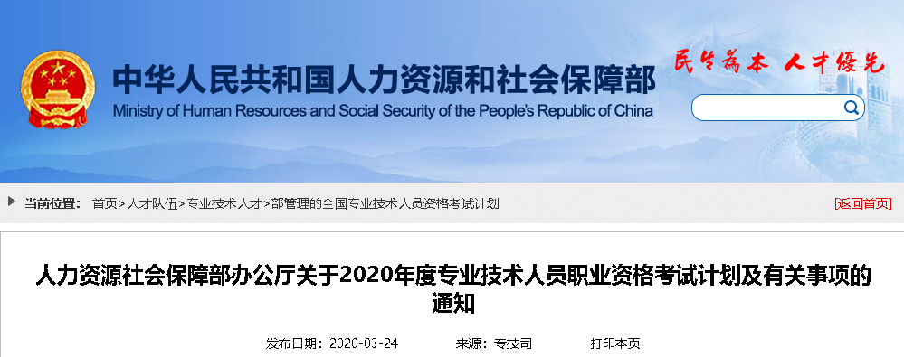 人力資源社會(huì)保障部辦公廳關(guān)于2020年度專業(yè)技術(shù)人員職業(yè)資格考試計(jì)劃及有關(guān)事項(xiàng)的通知